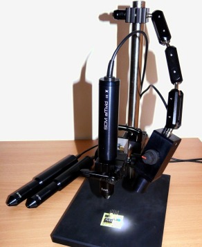 Daten: - Gewicht: ca. 250 g - Material: Aluminium, schwarz eloxiert - Beleuchtung: regelbare LED oder Kaltlichtquelle - Kameratyp: 1/4" CCD Color-Kamera(PAL) - Spannungsversorgung: 12 V - Stromaufnahme: ca. 160 mA - optional: manuelle Blendeneinstellung und Weißabgleich - Anschluß: Standard Video Signal (PAL), - über Cinch-Kabel an einen handelsüblichen Videomonitor anschließbar Einsatzgebiet: - für Beobachtung live am Bildschirm - Ersatz eines Stereomikroskopes - Bereich: Elektronik, Mechanik, Biologie, Restauration . . . Auflösung bei verschieden Vergrößerungen: (reale Messung an µm-Balken) Objektfeld Auflösung 15mm 30µm/Pixel 10mm 20µm/Pixel 5mm 15µm/Pixel 3mm 10µm/Pixel 2mm 8µm/Pixel Bilder von der altivid r3c www.mikroskopkamera.de |
